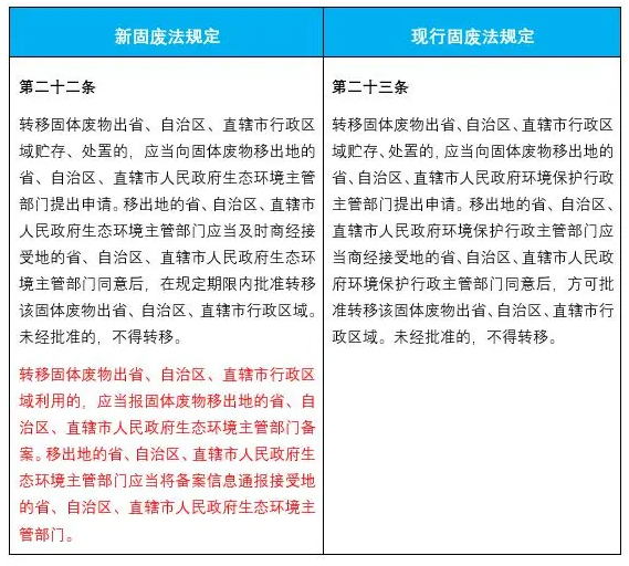 2.增加了跨省轉(zhuǎn)移固廢利用的,需報(bào)移出地生態(tài)環(huán)境主管部門(mén)備案的要求